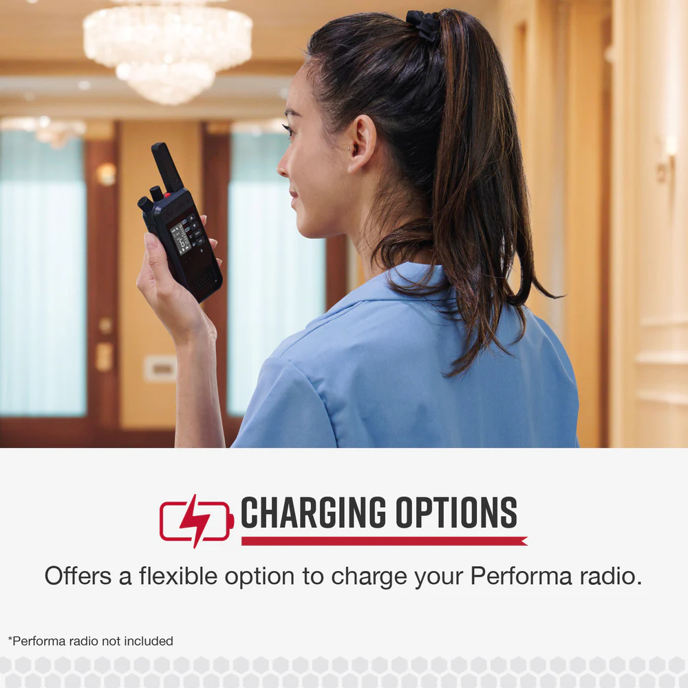 - Offers a flexible option to charge your Performa radio