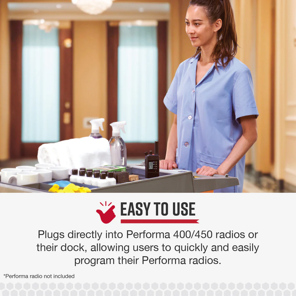 Use the programming cable to connect your Performa or TrailBlazer radio directly to a computer. The cable enables Cobra radio programming computer software to easily program Performa radios to desired frequencies. Fully customize your radio settings and quickly load saved settings from your computer.